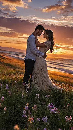 Get ready to make all your friends jealous every time you unlock your phone, because this image brings all the good vibes. From the tranquil waves gently rolling in to those pretty little purple flowers chilling in the foreground, every detail is just spot-on. It’s so dreamy, you might even find yourself spontaneously researching flights to a beach with golden sunsets after seeing this. So, ditch that blurry selfie or old stock photo; it’s time for a ‘couple wallpaper’ upgrade that screams ‘I’m living my best life (or at least dreaming of it!)’ every single day.