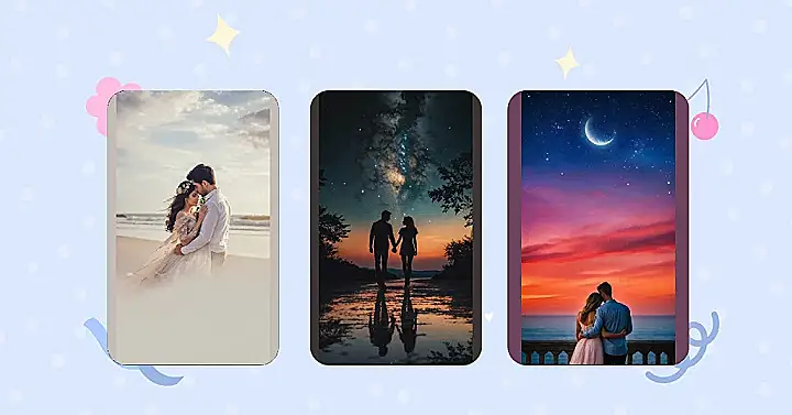 Thinking about ‘couple wallpaper,’ this image totally takes the cake. It’s so good, you almost feel like you should split it – one of you gets the starry moonlit sky, and the other gets the cozy couple by the dramatic sunset ocean. Or maybe you both just rock the full picture and confuse everyone about whether you’re vacationing in paradise or just really good at picking backgrounds. It’s definitely a fun, friendly reminder of those perfect, chill moments that make you smile, even if your actual date night is just watching Netflix in sweatpants.