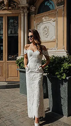 This dress is so epic, it looks like it’s ready for a red carpet event, maybe even a fancy party where everyone wears crowns. With all that amazing lace and the flowy skirt, you wouldn’t just walk into the room, you’d float in, probably followed by a little cloud of fairy dust or at least some seriously impressed stares. It’s the kind of women’s party dress that screams, “I brought my own spotlight!”
