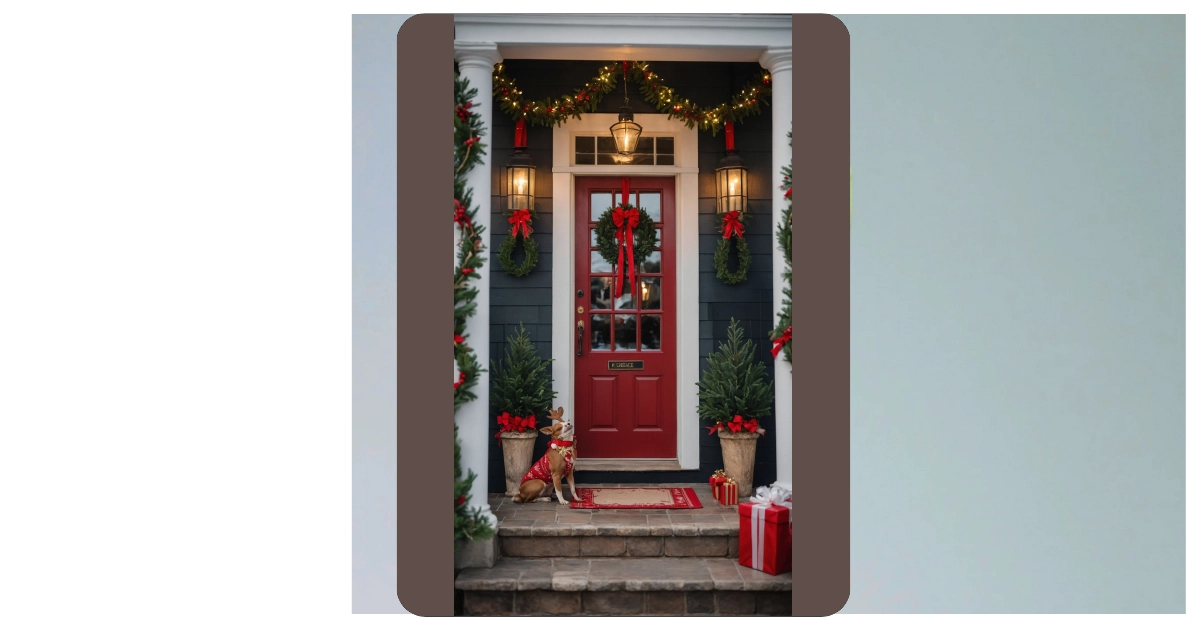 This front door clearly decided to go all out for Christmas, and honestly, we’re here for it! With that super bright red door practically shouting “Happy Holidays!” and a wreath sporting a bow bigger than some pizza boxes, this place is basically a festive high-five to everyone walking by. The two mini Christmas trees standing guard like tiny, adorable bouncers, each rocking their own giant red bow, just complete the whole “we take our outdoor Christmas decorating *very* seriously” vibe. You can almost hear them whispering, “Yes, we did all this in the chilly air, and no, we have no regrets.”
