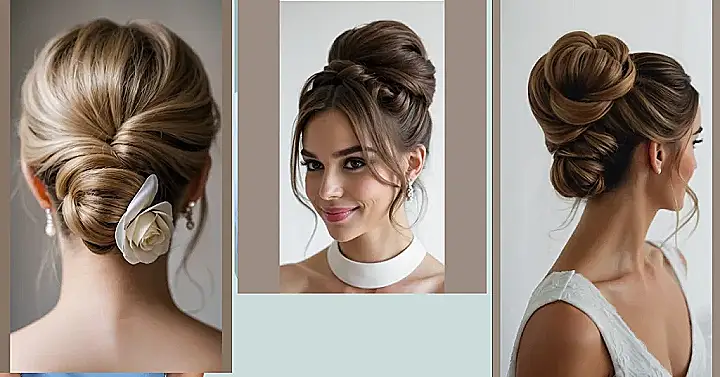 This hairstyle is like a sophisticated bun’s cooler, more stylish cousin! Imagine a beautiful, elegant updo that’s perfect for a wedding—no messy flyaways, just sleek, shiny hair twisted into a gorgeous masterpiece. It’s the perfect balance of fancy and fun, so you can dance the night away without worrying about your hair falling out of place. Plus, it looks amazing with almost any outfit—from a flowy dress to a sharp pantsuit!