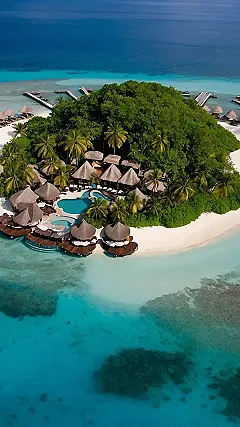 This resort design is like someone took a tropical island, sprinkled some cute little huts around it, and then added a pool shaped like a giant tear of happiness. It’s basically designed to make everyone who visits instantly want to quit their job and become a professional coconut opener. The way they arranged the huts over the water? Genius! You can literally roll out of bed and into the ocean. Talk about a wake-up call!