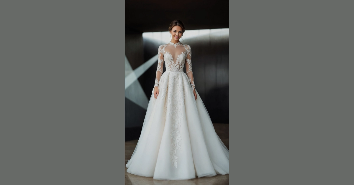 Talk about making an entrance! This wedding dress is practically screaming “future queen” with its incredible volume and delicate lace work. Look at that dazzling smile on the model – you just know she feels like she stepped right out of a fairytale, ready to float down the aisle without a single worry. With a skirt this grand, you could probably hide a small orchestra underneath or at least enough snacks to get through the entire reception. This gown is all about turning heads and making everyone say “wow!”