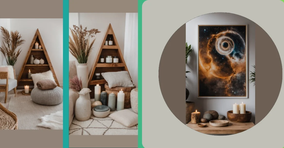 Forget trying to find peace between calculus homework and endless group chats – just look at this room! It’s basically saying, “Hey, world, hold my cosmic-themed sparkling water.” That giant artwork totally makes you feel like you’ve beamed up to a calm corner of the universe, far away from pop quizzes and awkward hallway encounters. Add some chill candles that smell like a vacation you can’t afford yet, and a bunch of stones that probably soak up all your worries like tiny, silent therapists. Who knew healing vibes came with such good interior design?