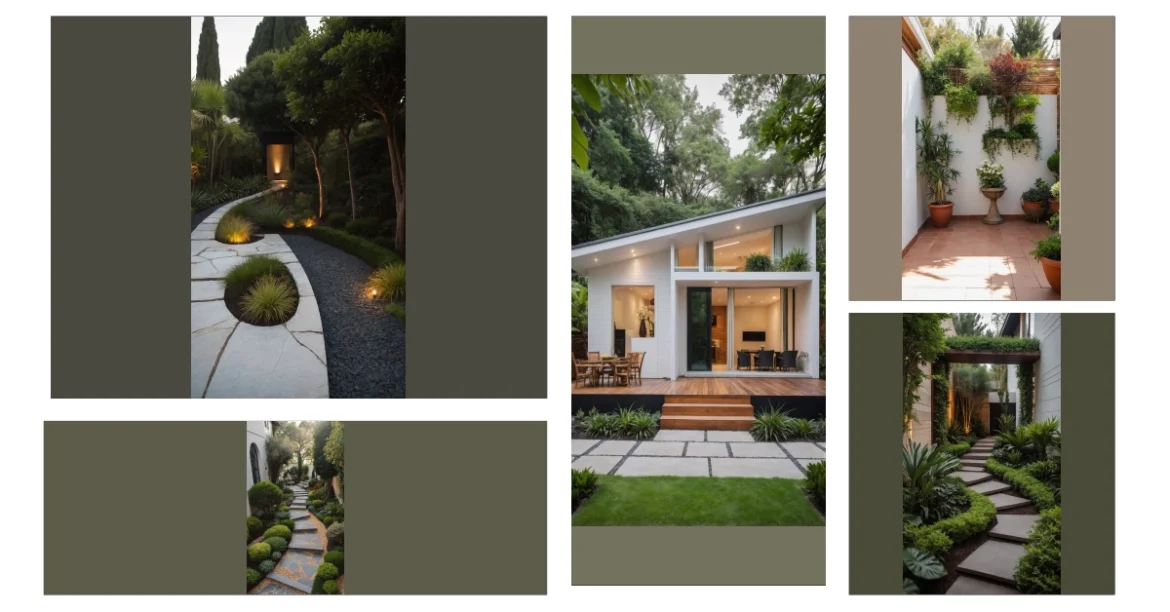 This home garden path looks like it leads to a secret level in a video game, but instead of battling monsters, you get to chill with some seriously happy plants! Those cool stepping stones aren’t just for walking; they’re like a stylish green carpet rolled out just for you, probably designed by a very artistic squirrel. All that lush greenery isn’t just sitting there looking pretty; it’s practically waving, saying, “Come on in, the plant party’s just starting!” Who knew your own backyard could be this much of an adventure, complete with fancy lighting that makes everything look even cooler after dark?