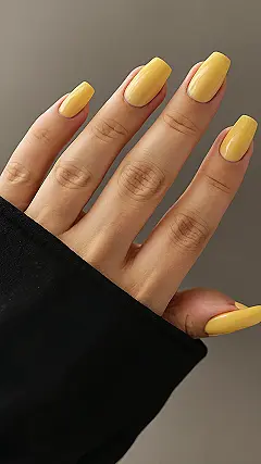 Look at those bright yellow nails! They are so sunny, like tiny little rays of sunshine decided to land right on your fingertips. Wearing this color probably makes you feel like you could instantly brighten anyone’s day or maybe even find things you drop under your bed without needing a flashlight. It’s like having a permanent cheerful accessory, and honestly, who couldn’t use a little extra happy color?