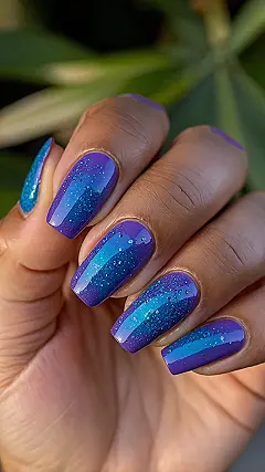 Forget basic purple; these nails are serving up major galaxy vibes! Just look at that amazing fade from a light, dreamy lavender all the way to a deep, mysterious violet. It’s like watching a sunset on a really cool alien planet, but for your fingers! And the glitter? Oh my stars, literally! It’s sprinkled on like a cosmic explosion, making every nail sparkle like it’s ready for a super important mission to Mars. Your nails will be so stunning, they might just distract you from your math homework – totally worth it, right?