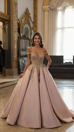 That dress! It’s like something a princess would wear to a super fancy party where they serve only pizza and ice cream – because even princesses deserve tasty treats! Seriously though, that dusty rose ball gown is unbelievably gorgeous. It’s all swishy tulle and sparkly details, perfect for feeling like a total queen (or maybe a very stylish pizza-loving princess).