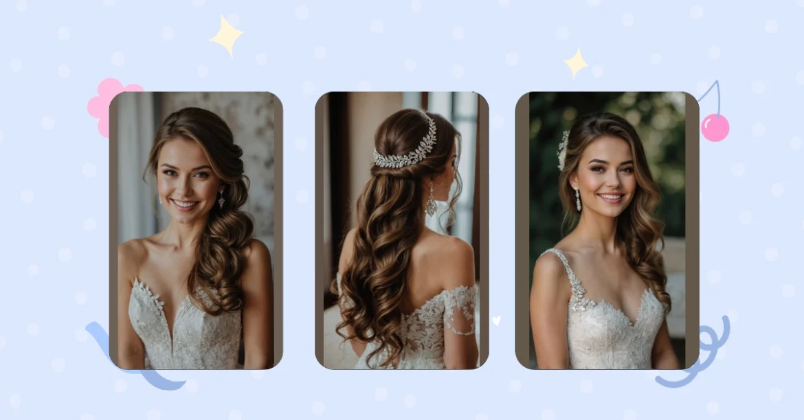 First things first – let’s chat hair length! Whether you’re blessed with long, medium, or chic short hair, you have endless options for styling. Those with longer locks can flaunt sultry curls or even a classic straight look with a gorgeous veil draping down elegantly. Medium-length beauties will dazzle with a side part that gracefully complements their features. And if you’re all about that short hair life, you can easily rock some playful waves or refined bangs – the choice is all yours!