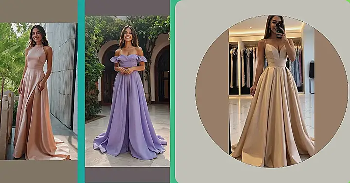 This dress is practically begging you to be the queen of the dance floor! Imagine yourself strutting in this gorgeous, mustard-yellow gown. The long, flowing skirt will make you feel like a princess, and the deep V-neckline is sure to turn heads. Plus, those sleeves? They’re giving major “I’m here to slay” vibes. Just don’t forget a good pair of heels to complete the look!