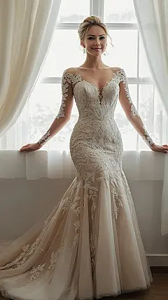 Imagine twirling on the dance floor, feeling like a woodland fairy who just snagged her prince! The lace sleeves are super pretty, so you don’t even need to worry about getting cold when your grandma insists on taking pictures outside. So go ahead, say “yes” to the dress that lets you be you, but with extra sparkle and a whole lot of dreamy fabric.