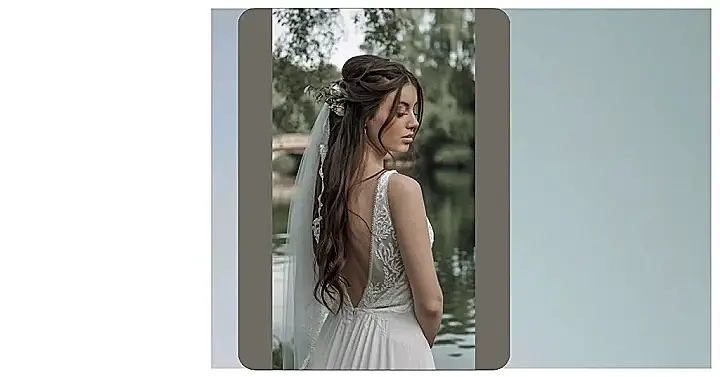 Seriously, this hairstyle is giving me major hair envy! Imagine all the compliments you’d get! It’s not too fussy or complicated, meaning you can actually dance the night away without worrying about your hair falling out of place. Plus, that veil is subtly stunning; it’s the kind of detail that makes a bride feel truly special on her big day. This look is proof that sometimes, less is more – simple, classic, and breathtakingly beautiful.