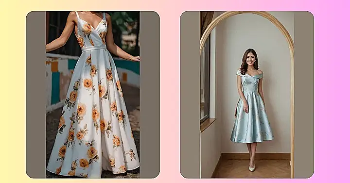 Wearing a super long gown like this feels like you should be floating down a red carpet, probably tripping over your own feet but looking totally fabulous doing it! This long gown design is so flowy and dreamy, it practically begs you to twirl (carefully, so you don’t knock over anything important). It’s the kind of dress that instantly makes you feel a little more grown-up and fancy, even if you’re just planning your next pizza order.