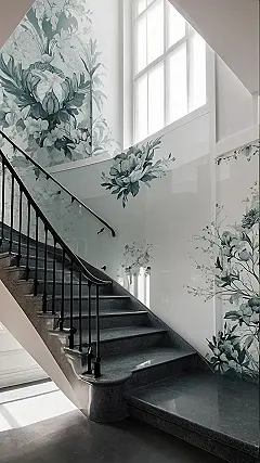 That staircase wallpaper is seriously leveling up the interior design game! This isn’t just about getting from one floor to another; it’s about making a statement. The combination of the elegant flowers with the sleek stairs is kind of genius – fancy but not stuffy, you know? It’s like saying, “Yeah, I’m sophisticated, but I also have a really cool secret garden upstairs.”