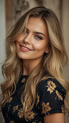You know that feeling when you’re having a great hair day and it makes everything else better? This girl looks like she’s having a permanent great hair day, and it’s clearly contagious! With those beautiful blonde and brown hues dancing around her shoulders, it feels like she’s got a built-in spotlight. She probably walks into a room and instantly brightens it up, not just with her fantastic hair but with that warm, welcoming expression. Who needs a filter when your hair and smile are this on point? She’s definitely ready for whatever awesome adventures come her way, with style!