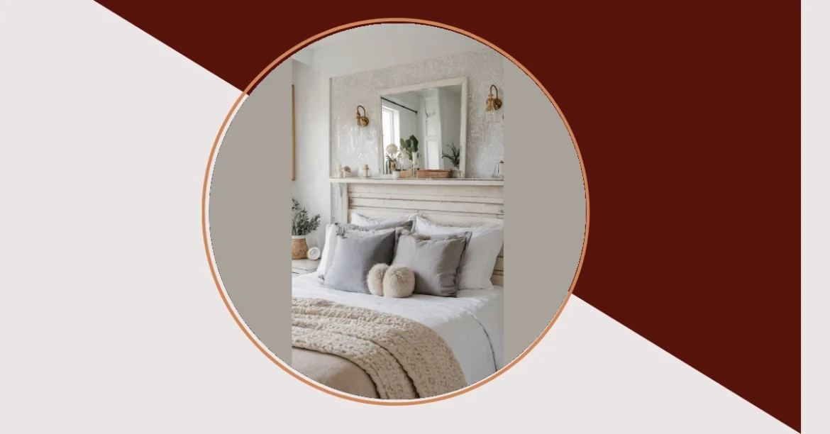 And let’s talk about those pillows – especially those two fluffy round ones! They look like soft clouds designed specifically for ultimate chill mode. That big mirror with its slightly worn frame isn’t just for checking if your hair is cooperating; it’s reflecting all the cool, natural light that makes this lake house space feel so open and fresh. With the subtle patterned wallpaper and those glowing brass lights, this room nails the ‘cozy but chic’ vibe. It’s the perfect spot to recharge after a day by the water, or just to escape the world for a bit (your phone might even forgive you for ignoring it here).