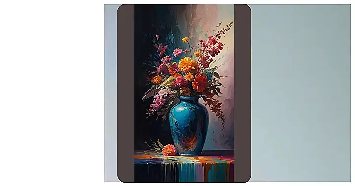 Plus, doesn’t that part where the colors drip down look hilarious and awesome? It’s like the paint got so excited being an oil painting background it just couldn’t contain itself and decided to make a run for it, leaving a trail of rainbow goodness. Painting like this must be messy but totally worth it, turning a simple bunch of flowers into something that pops off the canvas with energy, thanks to that wild, colorful background.
