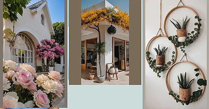 Even if you don’t have a giant flowering tree trying to hug your entire house, this place shows off how even small potted plants can totally transform your space. From the quirky textured pots chilling on the patio to the lush green peek-a-boo plants inside, every corner is getting a fresh, lively boost. It’s like these plants are having a secret party, making everything look effortlessly cool and inviting. So, if your room is looking a bit blah, remember these green buddies. A little bit of ‘home flower decor’ can turn any spot into your own personal, sun-drenched oasis – no green thumb wizardry required, just a dash of plant power!