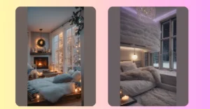 And check out the details! The cozy lights make everything feel warm and safe, like the room is giving you a gentle hug. There are even snacks on the table (because relaxation totally requires fuel). Grab a book, grab your phone, or just grab a snack and stare at the pretty plant. This isn’t just furniture; it’s a permission slip to do absolutely nothing important. It’s your official “do not disturb, recovering from school” headquarters. Enjoy your mission briefing in the land of comfy!