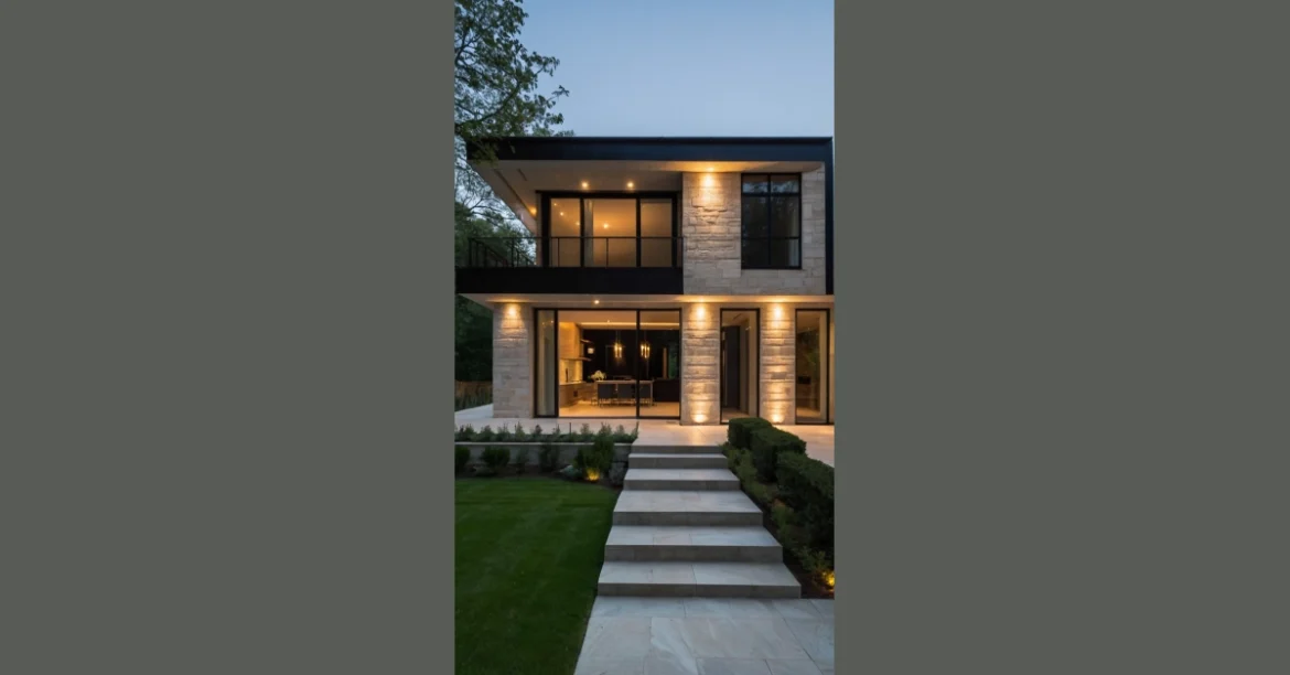 Imagine this place in France! With all the fancy windows and sleek design, you could totally picture yourself sipping hot chocolate here on a rainy day. The stone steps and garden look like something out of a movie, perfect for making a grand entrance… or a speedy escape when you’re late for croissants.