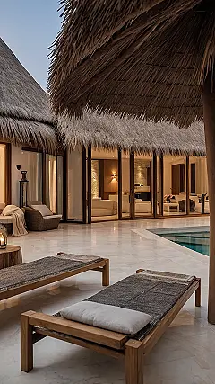 Stepping inside this cool villa, with its cozy, warm lights spilling out, feels like you’ve found the secret level in a video game where all the stress monsters disappear. You could totally binge-watch your favorite show from that plush armchair, or maybe even pretend you’re a spy on a super important, super secret mission (of napping). With a thatched roof that probably whispers tropical secrets and walls so white they just scream “clean slate,” this whole place is basically a giant permission slip to forget about everything and just enjoy being awesome. No chores, no homework, just pure, unadulterated, glorious relaxation.