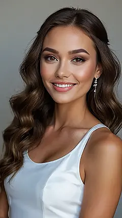 Seriously, those Hollywood waves are to die for! They’re so soft and bouncy, and they frame her face perfectly. It’s the kind of hairstyle that says “I’m getting married and I feel absolutely fantastic!” But even if you’re not walking down the aisle anytime soon, this hairstyle is perfect for prom, a fancy party, or even just a really great selfie day. Who needs a tiara when you’ve got hair this fabulous?