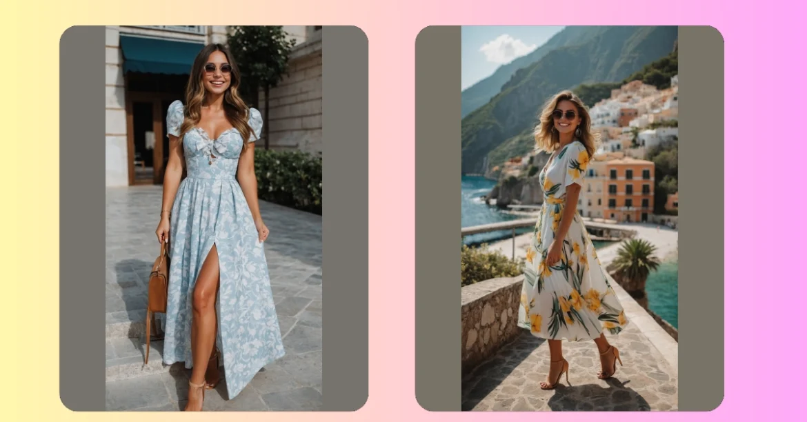 Let’s be real, rocking those heels on what looks like ancient, stony paths takes some serious dedication to fashion! But hey, when the backdrop is this stunning – colorful houses clinging to cliffs and sparkling blue water – every strut is worth it for that perfect photo op. This whole vibe is all about feeling fabulous, soaking up the sun, and making memories (and looking super chic doing it). It’s the ultimate lesson in vacation dressing: pick something that makes you feel good, looks great in a selfie, and maybe, just maybe, has enough flow to pretend you’re effortlessly floating through paradise.