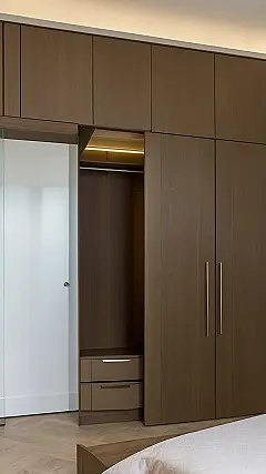 That wardrobe looks like it belongs in a magazine! It’s got sleek, modern doors and a gorgeous wood finish that would make any bedroom feel like a palace. The drawers at the bottom are perfect for storing all your secret treasures, like those cool shoes you’re saving for a special occasion. And the light inside? It’s like a spotlight on your awesome clothes. I bet everyone would be jealous if they saw this closet!
