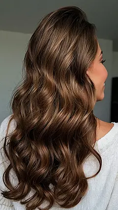 This picture shows some seriously gorgeous wavy hair! It’s like a waterfall of chocolate brown locks, flowing down someone’s back. You can almost feel the softness just by looking at it! It’s the kind of hair that makes you want to run your fingers through it, but you know you shouldn’t because you might get stuck in the curls!