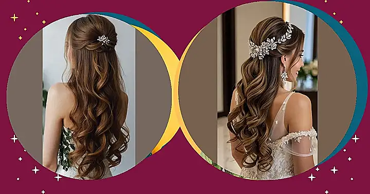 This hairstyle is like if a Disney princess decided to ditch the tiara for something a little more grown-up but still totally magical. Seriously, that wavy hair is on point! It’s like the ocean, but way less salty, and definitely more likely to get you compliments at your wedding. Plus, that sparkly hairpiece? It’s giving us major fairy vibes.