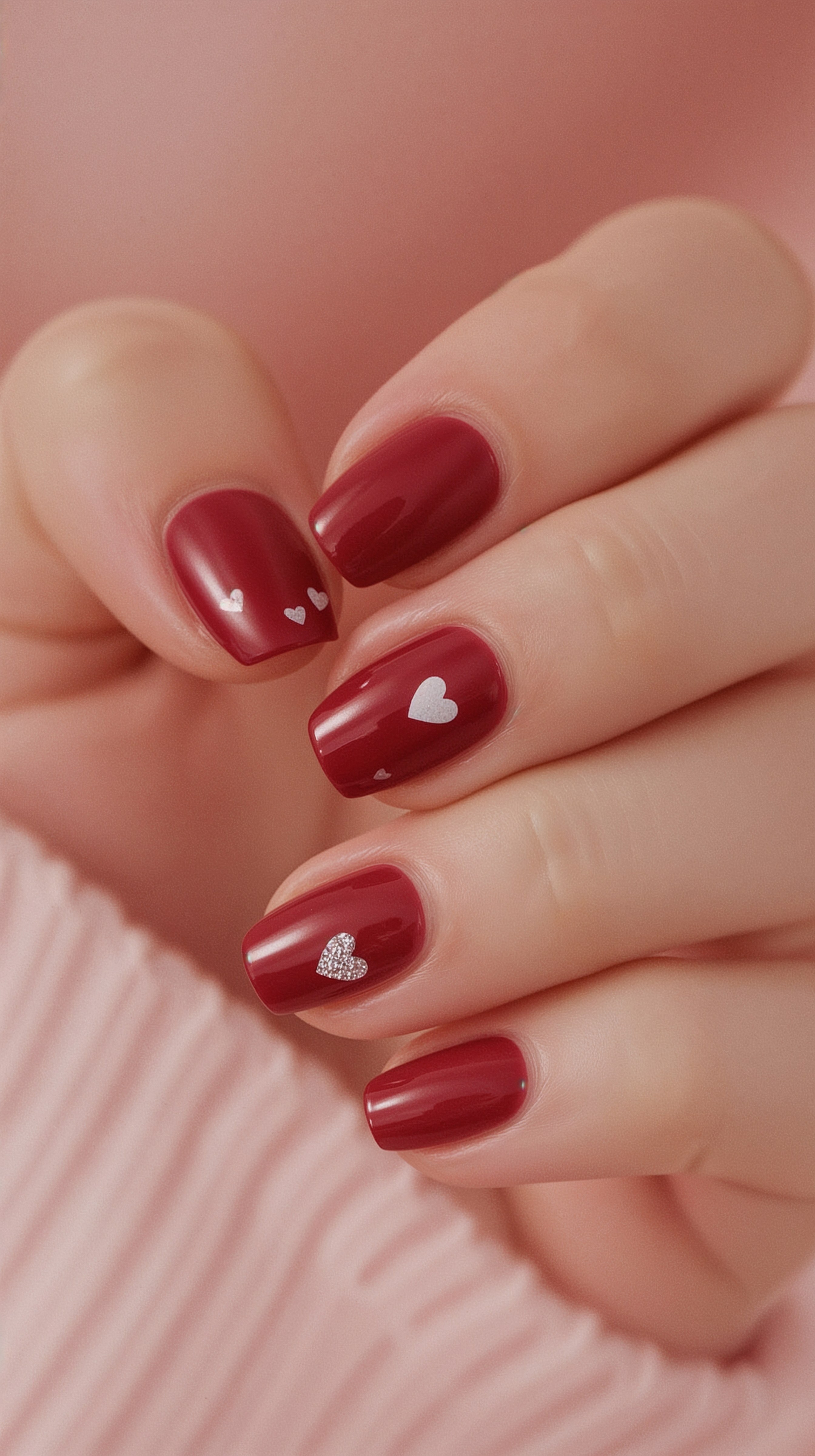 #1 Cute Valentine’s Day Heart Nail Designs in Maroon