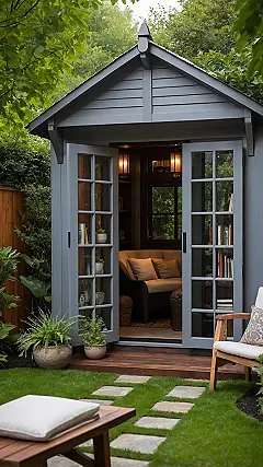 Forget those dusty old garden sheds filled with cobwebs and rusty shovels. This isn’t where you stash the lawnmower; this is where you *escape* the lawnmower! Peeking inside, you’ll see a cozy couch practically begging you to ditch your chores and dive into a good book. It’s like finding a secret VIP lounge right in your backyard, perfect for when you need a break from, well, everything. Just don’t tell your parents it’s your new ‘study space’ when you’re actually perfecting the art of the power nap.