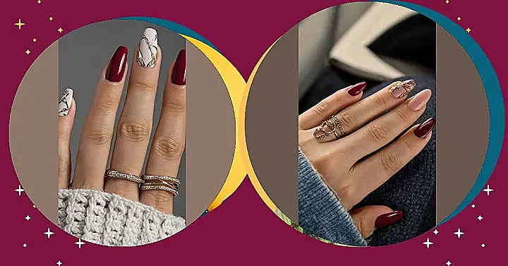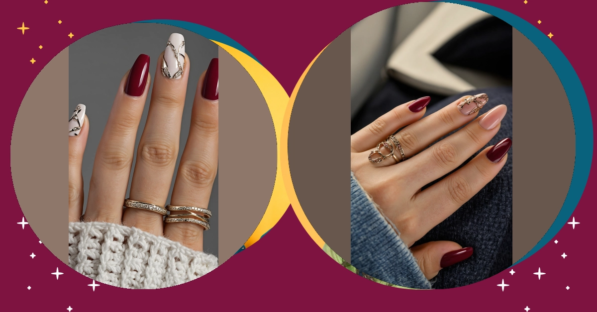 The chilly air of winter 2025 is no match for hands looking this good! With nails rocking that deep, fancy red – like a perfect cozy cranberry – and a creamy accent nail that’s practically dripping in silver sparkle, you’ll be ready for any holiday party or just making your hot cocoa look extra glamorous. Peeking out from a super comfy white sweater, these nails tell everyone you’re here to conquer the cold with serious style, even if your biggest plan is just binge-watching TV.