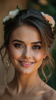 And let’s not forget that dazzling hair accessory! With its delicate flowers and sparkling little details, it’s giving off serious “enchanted winter garden” vibes – like tiny snowflakes landed perfectly on her head, but way more organized and sparkly. Paired with those chandelier earrings, she’s basically shimmering like a freshly fallen blanket of snow, only much warmer and definitely more comfortable. It’s the secret weapon for looking like a total queen without having to worry about actual ice crystals getting tangled in your fabulous locks.