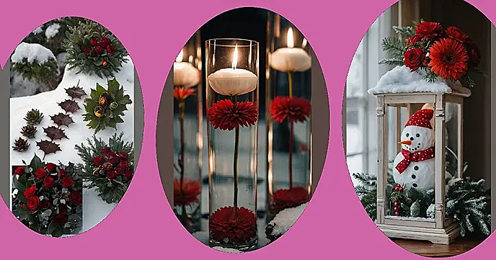 Seriously though, these winter floral arrangements are goals! They’re like the epitome of festive chic, all tucked snugly into their little lantern homes with a candle that’s just begging to be Instagrammed. It’s the perfect winter centerpiece, way more exciting than a bowl of potpourri! You could practically smell the crisp winter air and feel the gentle snow falling just by looking at them. Plus, who doesn’t love a good candlelit flower display, especially when it’s surrounded by fake snow? It’s totally Instagram-worthy, right?