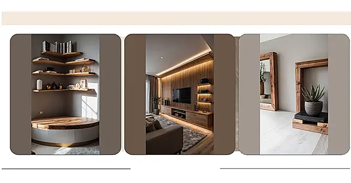 Forget those boring, stuffy rooms! This picture is a total vibe, showing how a little bit of wooden room decor can totally transform your space into a super chill and inviting hangout. Those sleek wooden shelves aren’t just holding things up; they’re like the VIP section for all the cool plants, cozy candles, and even those mysterious white “books” that probably just exist to look good. It’s almost like the wood itself is whispering, “Welcome to cozy town, population: you and your perfectly styled room (for five minutes, anyway!).”