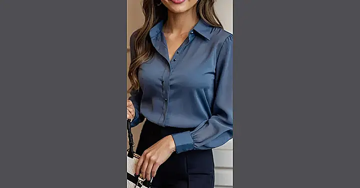 Seriously, this blouse is giving major “effortlessly cool” vibes. It’s the kind of top you can throw on and instantly feel confident and put together. Plus, that color? It’s like the perfect shade of “sky after a summer rain.” And can we talk about how cute it would look with some white sneakers and a denim skirt? It’s the kind of blouse that’s comfortable enough to wear all day but stylish enough to make a statement. It’s a win-win!