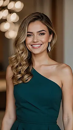 With hair looking this good, who needs a crown? She’s rocking that green dress with a smile that says, “My hair showed up to party, and so did I!” Those beautiful waves aren’t just for show; they’re practically a superpower, giving her entire look a playful yet totally put-together vibe. It’s the ultimate “I woke up like this, but also spent two hours making sure it looks like I woke up like this” hairstyle. Perfect for acing that school presentation or just looking amazing on a regular Tuesday, proving side waves are always a win!