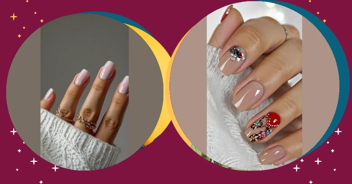 Forget boring old nail polish; these modern nails are basically throwing a full-blown party on your fingertips! With a super chic nude base that lets the shine really pop, these aren’t just painted nails – they’re tiny canvases featuring some serious 3D art. It’s like each nail decided it wanted to be a fancy brooch or a miniature piece of jewelry, complete with all those colourful, sparkling gems. You might even find yourself constantly staring at your own hands, trying to figure out if you’re holding a secret treasure map.