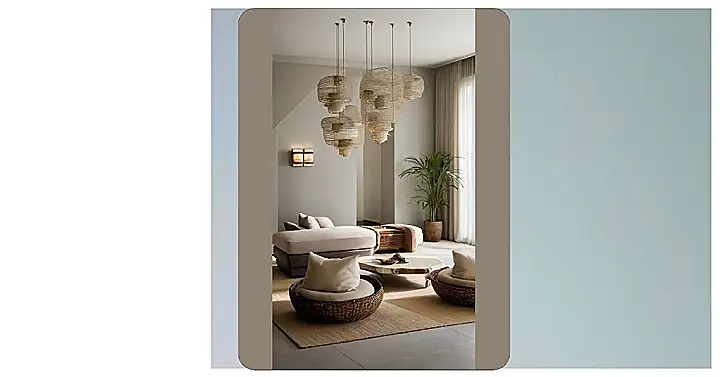 Check out this chill living room! It’s got that “I’m too relaxed to even pick up my phone” vibe going on. From the super comfy couch that looks like a giant marshmallow, to the woven basket chairs, it’s basically a spa day for your eyeballs. And those funky light fixtures? They look like giant, fancy bird nests, but in a cool, stylish way.