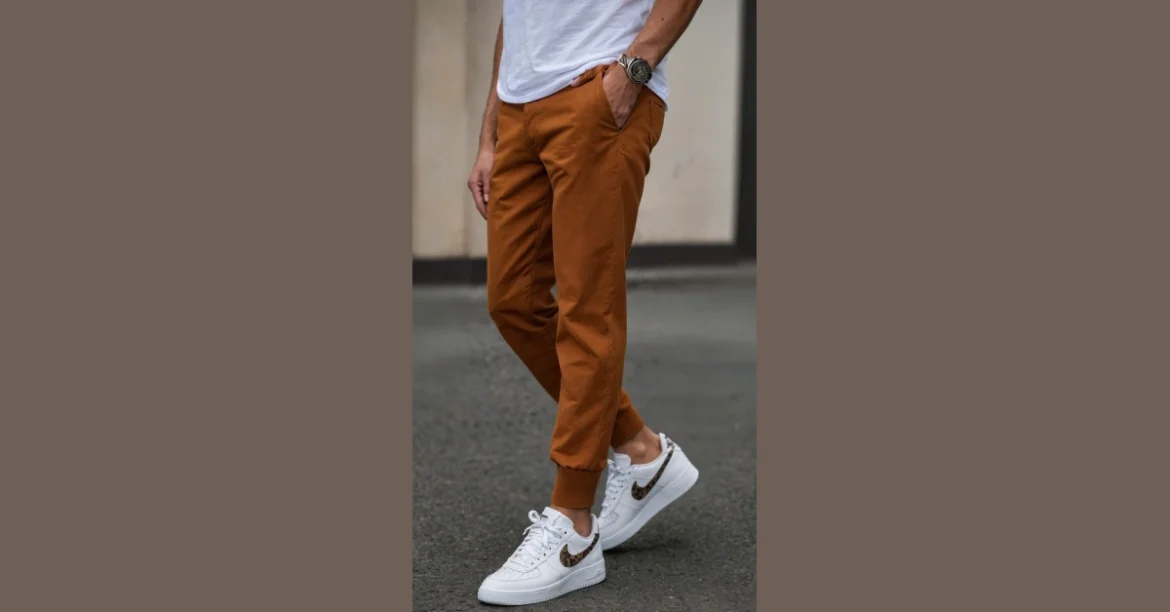 This isn’t just any pair of pants; these rust-colored joggers look like they’ve mastered the art of being both super chill and surprisingly stylish. They’re the kind of men’s pants you wear when you want to look put-together without actually putting in much effort, which, let’s be honest, is most of the time for us guys. Paired with a crisp white tee, it’s a combo that screams “I woke up looking this good and totally ready for whatever.” No need for complex fashion rules here, just pure, comfortable swagger that says you know your way around a good outfit, even if your main plan is to binge-watch something amazing.
